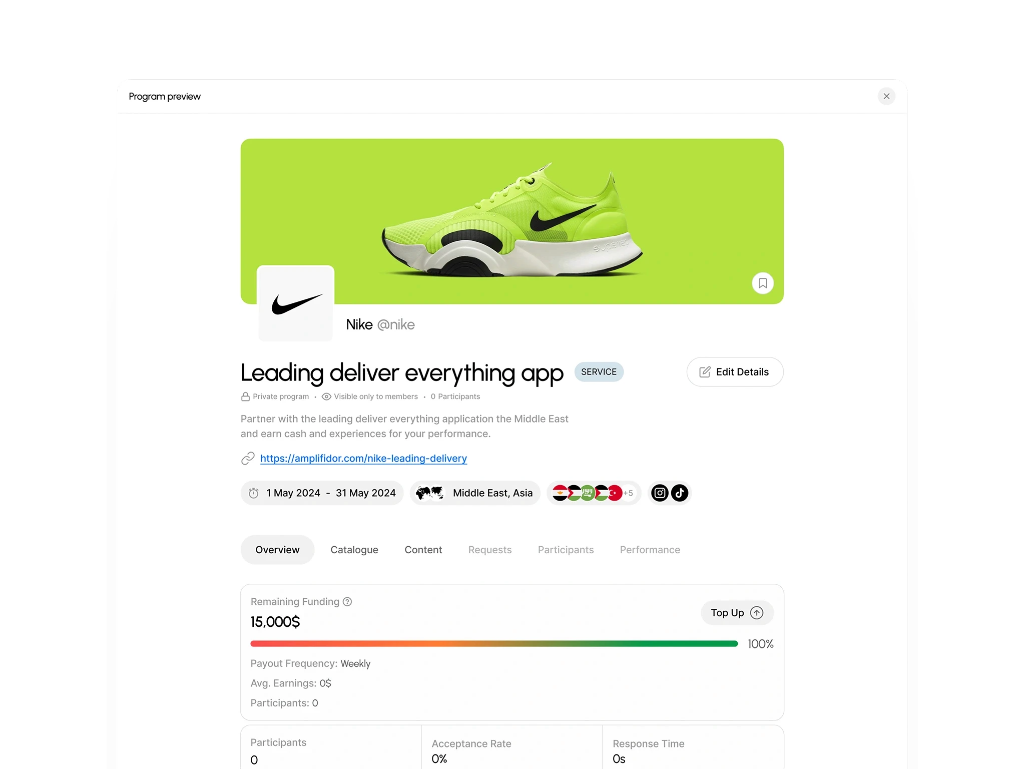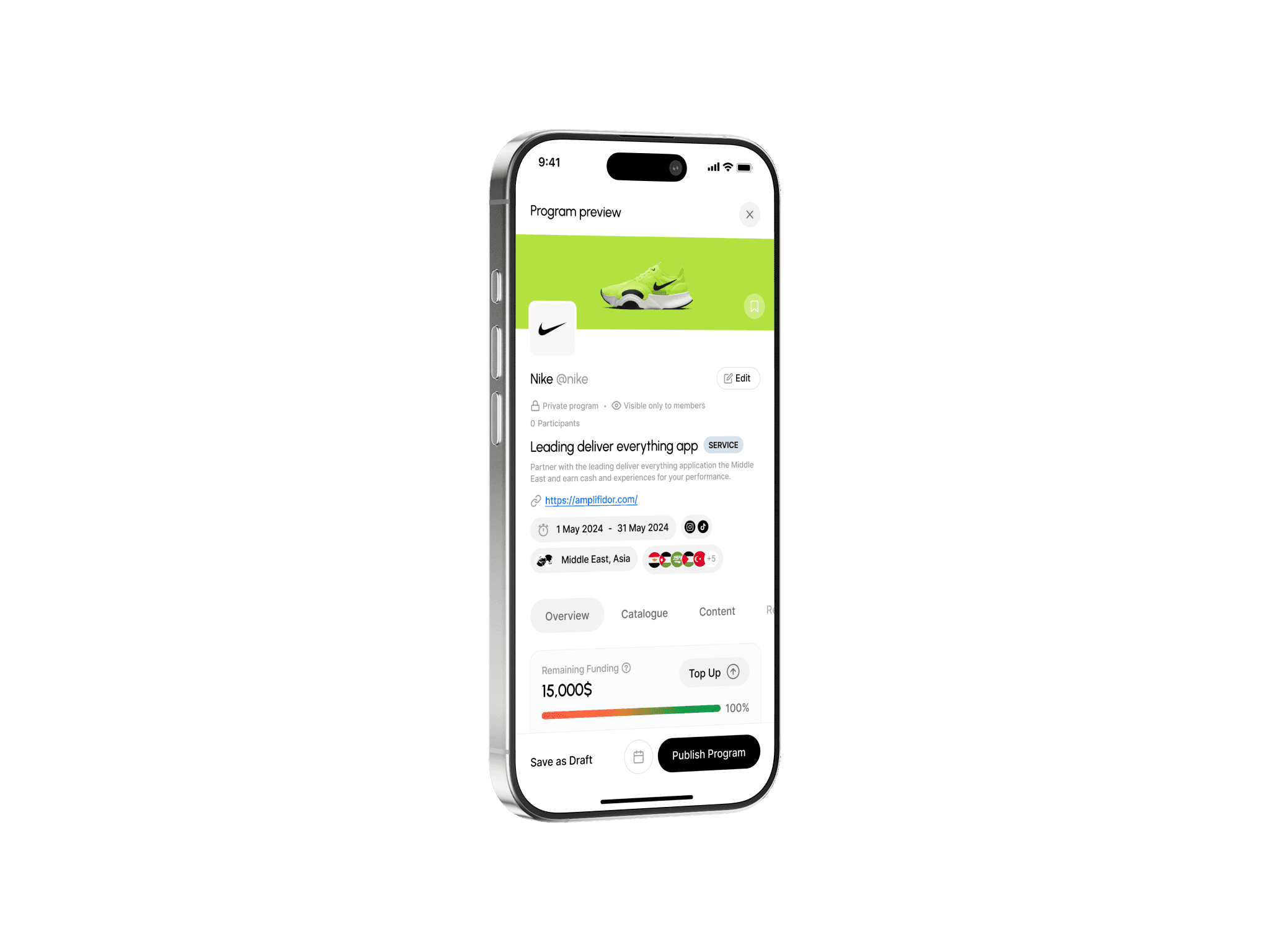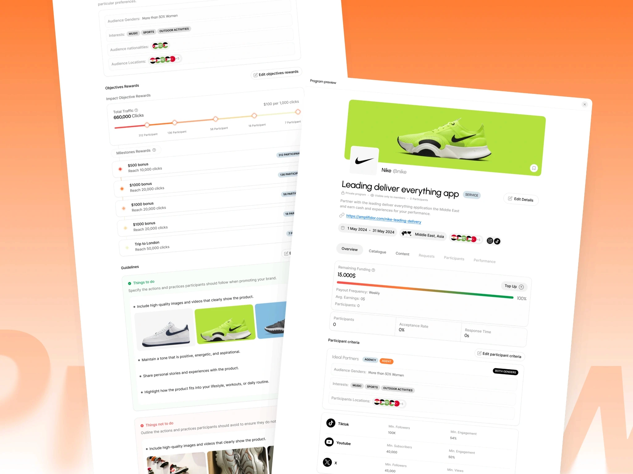 The core execution hub where brands launch "Programs" with clear deliverables. It automates the entire lifecycle, from discovery and application to verification and milestone completion.