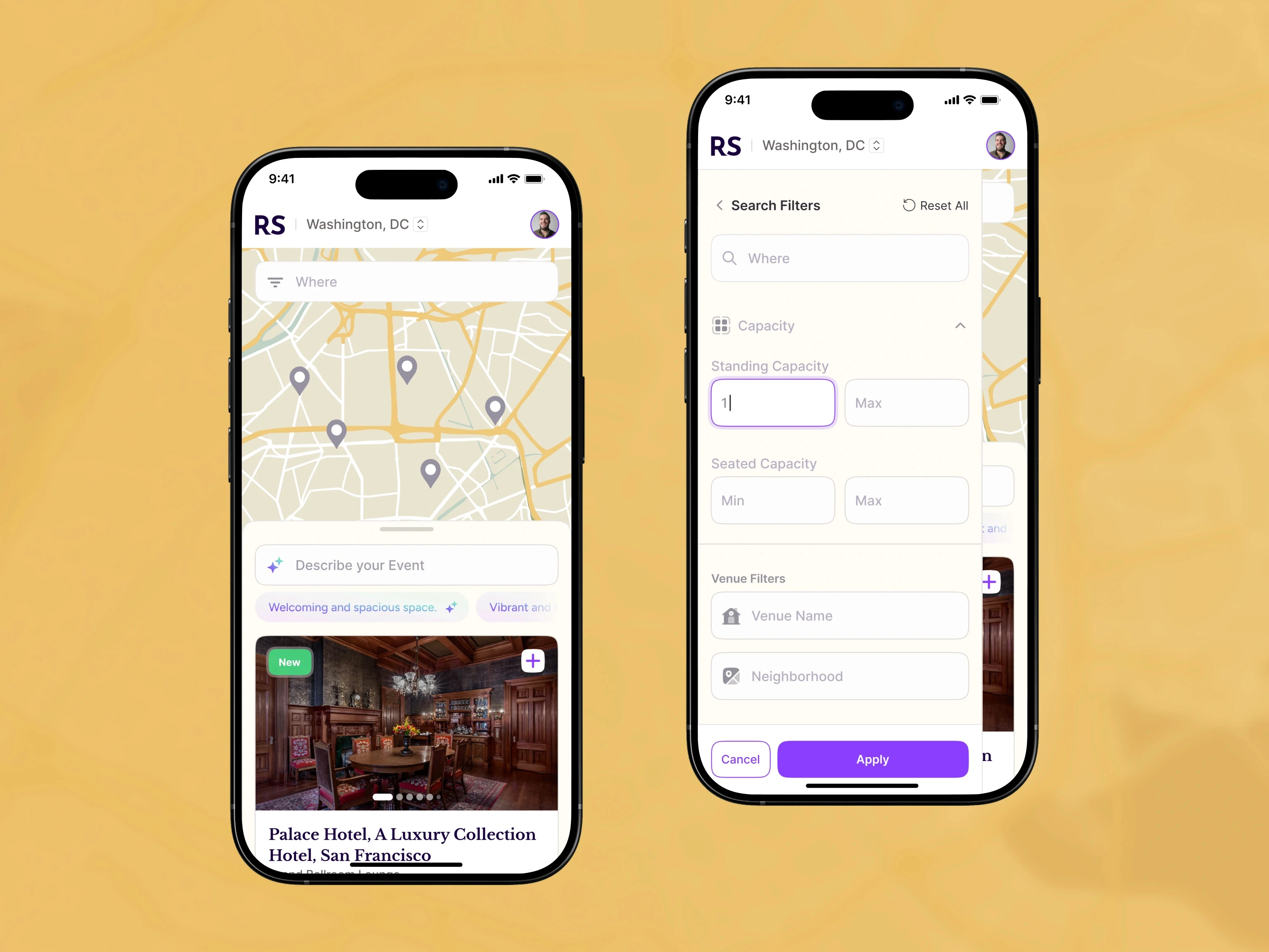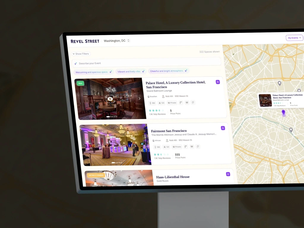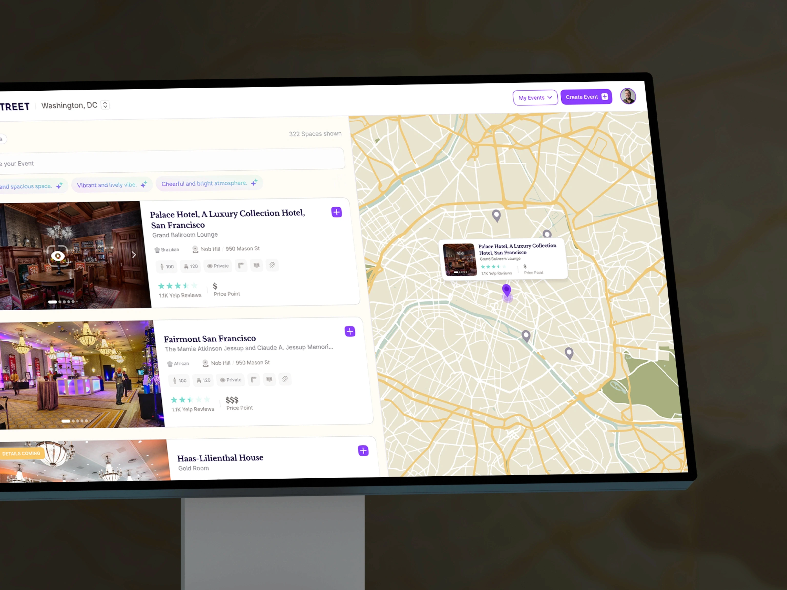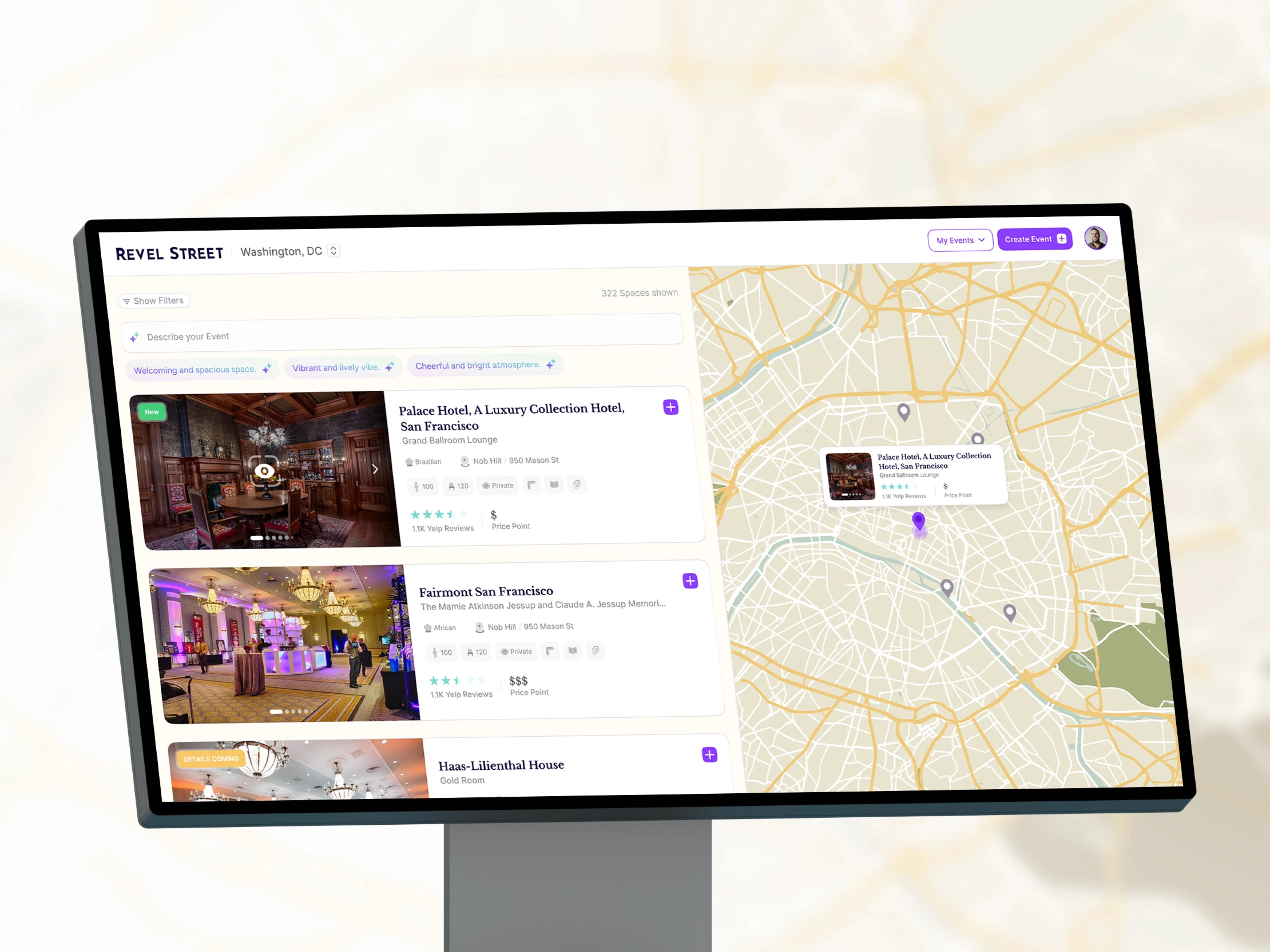 Users can type or speak their requirements naturally. The AI analyzes venue metadata to surface the most relevant matches instantly.